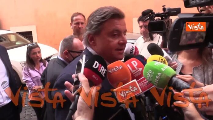 La battuta del leader di Azione, Carlo Calenda, a margine della presentazione del “Patto repubblicano” tra Azione e +Europa alla sede dell’Associazione della Stampa Estera a Roma.