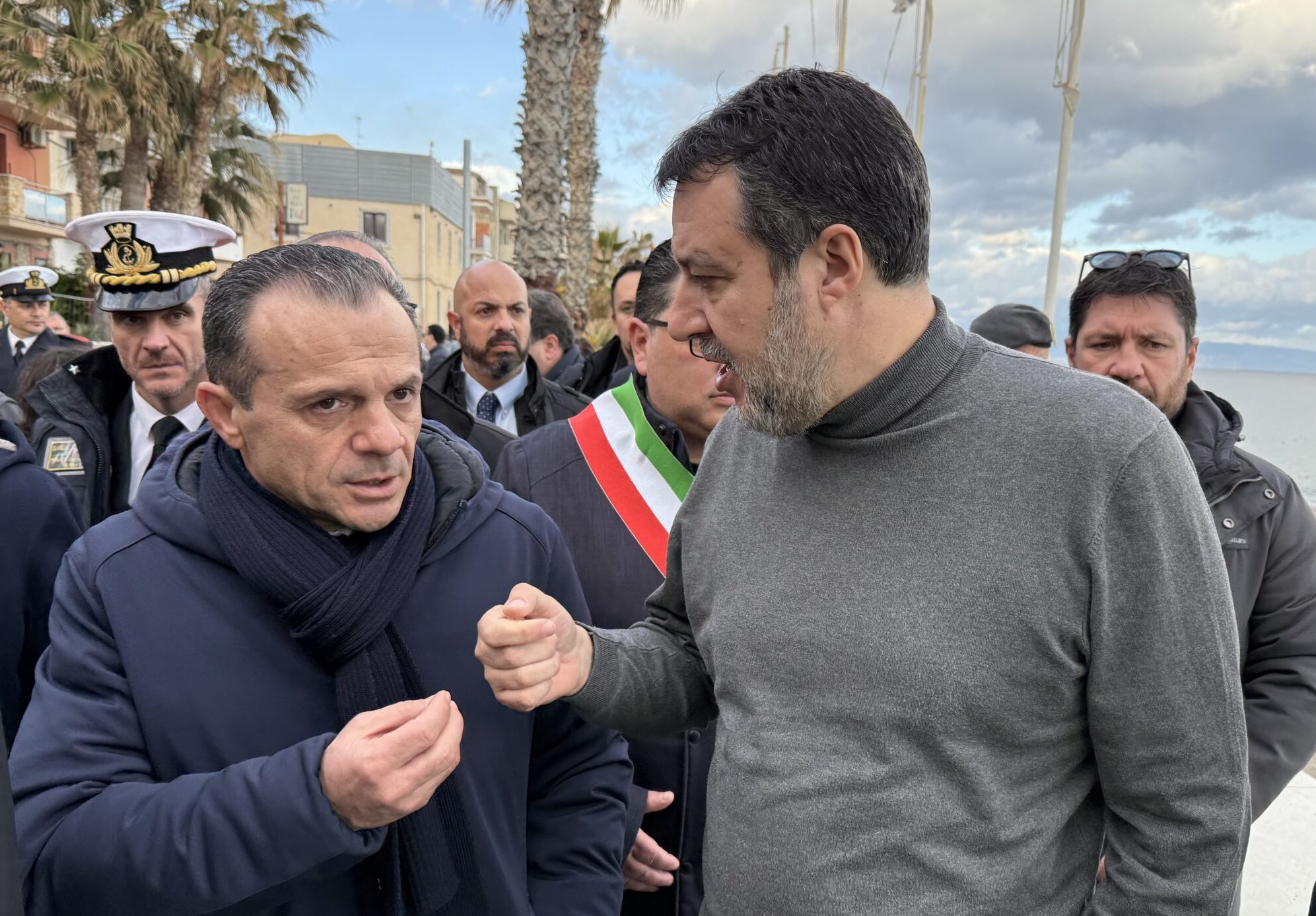 Il Ministro delle Infrastrutture ieri pomeriggio aveva raggiunto la zona Ionica per i sopralluoghi nelle aree colpite dal Ciclone Harry. Si era quindi recato a Letojanni, dove aveva trovato ad attenderlo De Luca. Via le ruggini e le tensioni. Un saluto cordiale, poi la passeggiata insieme sul lungomare, con un dialogo istituzionale e i buoni propositi per affrontare in sinergia l’emergenza. “Matteo, domani viene pubblicata l’ordinanza? Ma ci sono tutte le richieste che abbiamo fatto, di essere sub-commissari i sindaci per essere più veloci?”, questa era stata la domanda rivolta da De Luca a Salvini, con il Ministro che aveva prontamente rassicurato: “Tutto ai sindaci”. A quel punto De Luca prendeva atto: “Quindi è chiarito che si va veloci e spediti”.