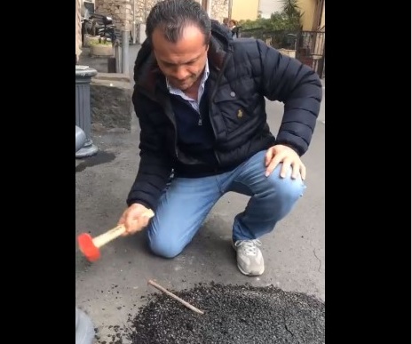 De Luca ha rimosso un tratto di asfalto che era stato posto in Via dietro Cappuccini: sotto c’era un tombino. “Non si tappano le buche chiudendo le caditoie della raccolte acqua bianche ed i tombini di ispezione. Qui ci sono grate coperte. Sarà un’azione poco fine ma queste cose non si possono permettere. Ora venite a denunciarmi”, ha detto De Luca.