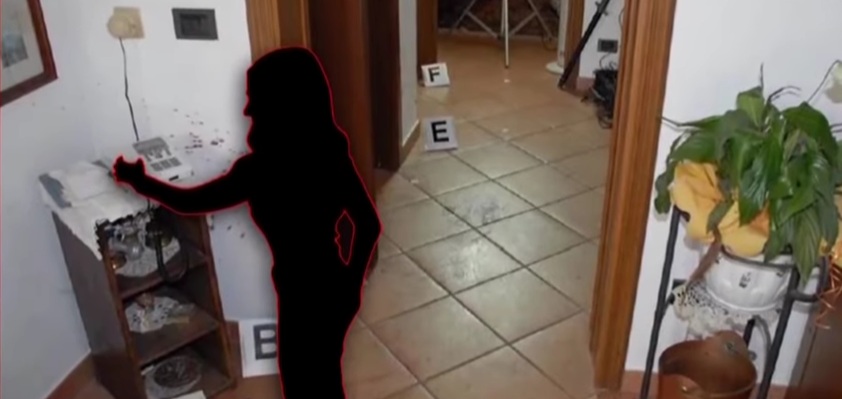 I primi colpi alla ragazza – come evidenziato da un approfondimento del programma Ore 14 Sera, su Rai2 – potrebbero essere stati inferti mentre si trovava in piedi e con la cornetto in mano: voleva forse chiamare aiuto? Sarebbe questo il momento in cui viene proiettata questa goccia obliqua nel vano del telefono.