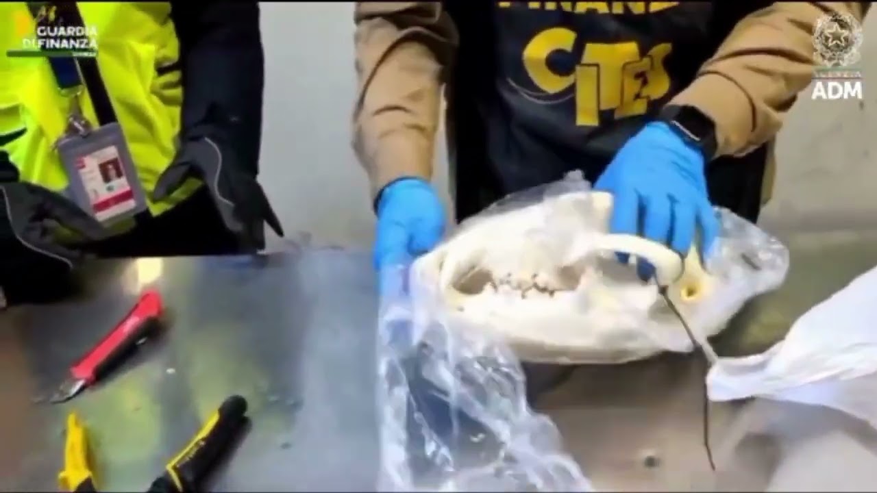 Sequestrato all’aeroporto di Malpensa dalla Guardia di Finanza il cranio di un orso bruno. Le immagini.