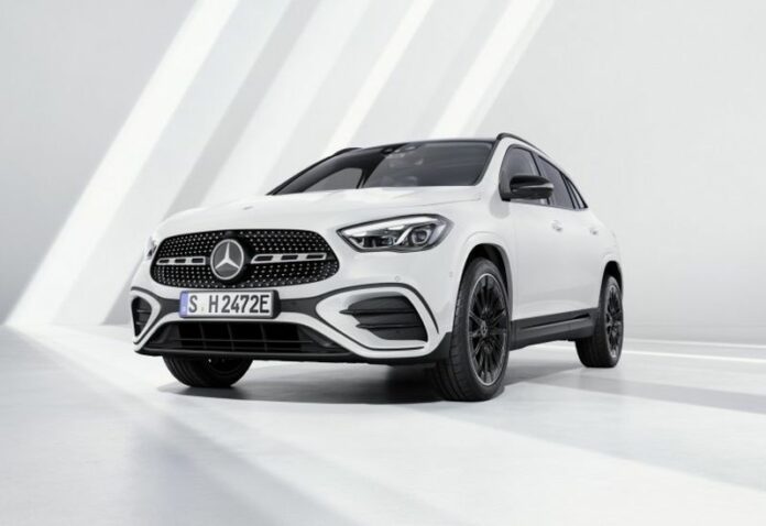 Un look rivisto anche attraverso la nuova firma luminosa dei fari anteriori a Led High Performance di serie e delle luci posteriori a Led. Mercedes-Benz amplia la gamma di opzioni con il nuovo colore di vernice Spectral Blue e quattro ulteriori design per i cerchi. Nell’allestimento d’ingresso, la nuova GLA monta cerchi in lega a cinque doppie razze da 17 pollici in nero lucido con superfici tornite lucide. Sono disponibili anche cerchi da 18 a 20 pollici. Il doppio schermo indipendente è uno dei punti di forza degli interni, notevolmente rinnovati. Di serie il volante rivestito in pelle, i sedili comfort rivestiti in pelle sintetica Artico e tessuto tridimensionale in rilievo di colore nero. L’equipaggiamento di base comprende già l’Highbeam Assist, la telecamera di backup e il pacchetto Usb. La GLA è ora dotata anche dell’ultima generazione di Mbux, con stili di visualizzazione di nuova concezione. La revisione del sistema telematico si è concentrata su un nuovo design e su prestazioni migliorate. Una nuova caratteristica è la possibilità di connettersi in modalità wireless con gli smartphone tramite Apple CarPlay o Android Auto Wireless. Per ridurre ulteriormente consumi ed emissioni, i motori a benzina della nuova GLA sono tutti elettrificati. La gamma comprende unità a quattro cilindri con cambio a doppia frizione DCT a sette o otto rapporti come equipaggiamento standard. I mild hybrid sono dotati di un’alimentazione supplementare a 48 volt per il generatore di avviamento a cinghia. La trazione ibrida plug-in ulteriormente sviluppata della GLA 250 e ottiene soprattutto un aumento delle prestazioni. Il motore diesel a quattro cilindri da 2,0 litri combina una fluidità di marcia e un’erogazione di potenza superiore con un’efficienza contemporanea. E’ disponibile in tre livelli di potenza e coppia. Le sue caratteristiche includono la sovralimentazione a singolo stadio con turbina a geometria variabile.