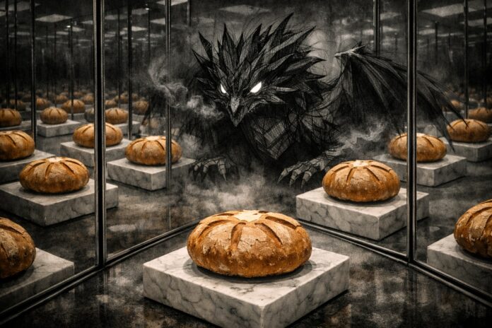 “Enter the Dragon”. Eccoli gli specchi, dietro ad ognuno ci sono storie di pagnotte. La stanza unisce attori e territori, protagonisti e comparse. Il pubblico e il privato in un film dove il copione si ripete e la sceneggiatura si rinnova. Specchi e pagnotte. Il Drago d’Oriente diventa Drago di Trinacria.