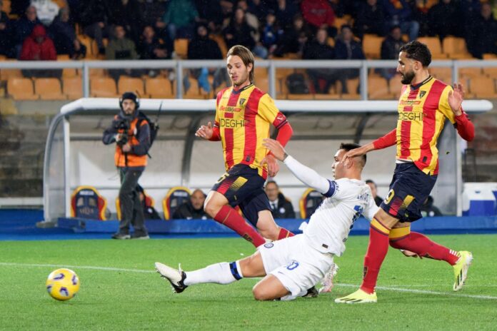 LECCE (ITALPRESS) – L’Inter si impone per 4-0 sul Lecce al “Via del Mare” e rimanda a -9 la Juve grazie alla doppietta di Lautaro e alle reti di Frattesi e De Vrij. Dopo un primo tempo equilibrato, nella ripresa non c’è praticamente mai storia: il Lecce cala di intensità e convinzione, a differenza di un’Inter dominante e bella da vedere. La squadra salentina approccia la gara con grande personalità, pressando alta l’Inter e senza alcun timore di attaccare con tanti uomini.