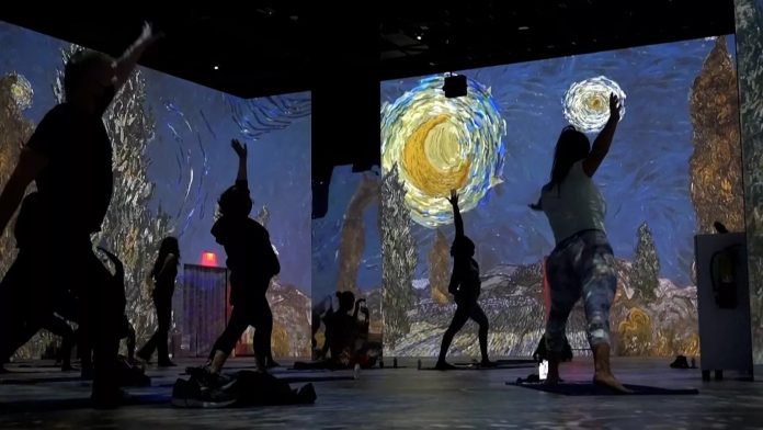 I visitatori di Las Vegas possono ora partecipare a una lezione di yoga circondati dai colori vorticosi delle opere più famose di Vincent van Gogh, proiettate dal pavimento al soffitto.